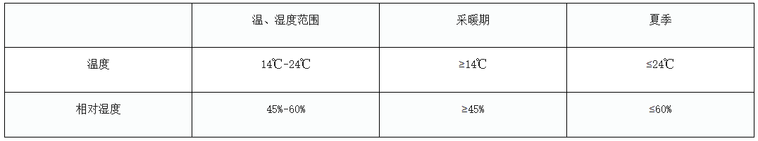 國(guó)家檔案局《檔案庫(kù)房技術(shù)管理暫行規(guī)定》對(duì)檔案庫(kù)房(也適用于機(jī)關(guān)檔案室)溫濕度要求做了如下明確界定:檔案庫(kù)房(含膠片室、磁帶室)的溫度應(yīng)控制在14~24℃,有設(shè)備的庫(kù)房日變化幅度不超過(guò)2℃,相對(duì)濕度應(yīng)控制在45~60%,有設(shè)備的庫(kù)房日變化幅度不超過(guò)±5%。